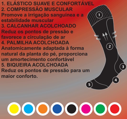 A utilização da meia alta permite uma maior estabilidade muscular, reduzindo a possibilidade de dores provocadas pelo esforço físico.